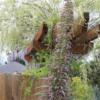 Echium ‘Pink Fountain’ is a hybrid between a red-flowered Echium wildpretii and a blue-flowered Echium pininana. During the first year it forms a rosette of long, spear-shaped, bristly, silvery-green leaves, followed in the second year (and sometimes not until the third year) by a single, bold, tapering flower-stem up to 13 ft in height (with 18 ft recorded)! The stretching spire is covered by thousands of showy, densely-packed, light pink flowers that give the impression it’s one single towering flower! The flower spike starts its show early to mid spring (May for us) and continues to flower for months. It attracts pollinators from all around. Bumblebees never leave it which makes us wonder if they ever go back home. Plants are monocarpic, so set seed after bloom and then die. Will self sow, however seedlings may or may not survive the winter(s) in zone 9 or lower.